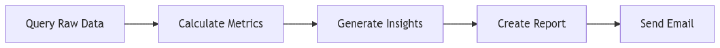 Generate report from a CEO request to AI Agent: “How did we do with the hospitality business in the first half of the year? Please send the report to email.”